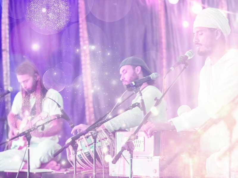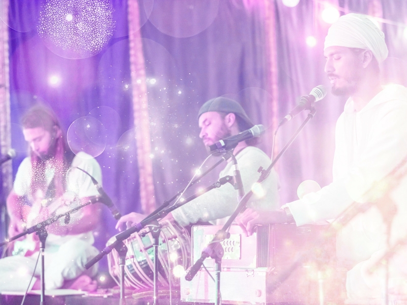 artists, teachers, and musicians offering prayers through rhythm, mantra, and voice.